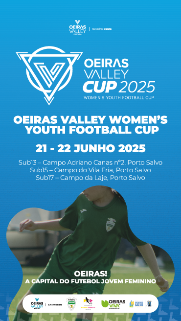 Nos dias 21 e 22 de junho de 2025, Oeiras será palco da Oeiras Valley Women’s Youth Football Cup, um torneio internacional dedicado ao futebol feminino de formação, que contará com três escalões competitivos: Sub-13 (Campo Adriano Canas nº2), Sub-15 (Campo do Vila Fria) e Sub-17 (Campo da Lage) – todos em Porto Salvo.
